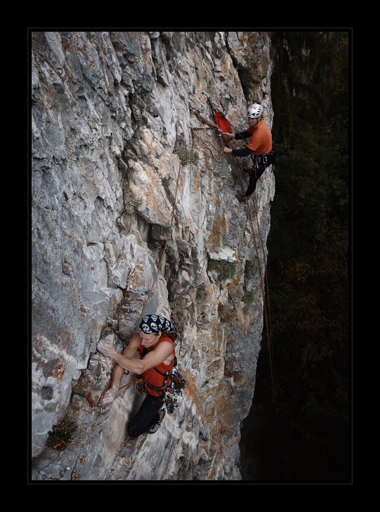 Podle všeho se Stoupovi s Jankem po nějakých dvaceti letech povedlo první opakování cesty Aleluja na Rorejsech. Trošku jsem se kolem nich motal s foťákem. Když jsem viděl co lezou, byl jsem moc rád, že visím na své statice uvázané nahoře o strom … ale přežili to.