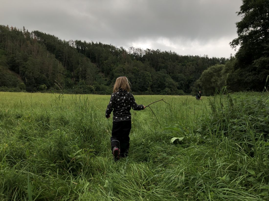 Deštivý víkend nás neodradil od další výpravy na Tišnovsko. Tentokrát s námi šla Káma, Grétka a Prokop. Navázali jsme na naši předchozí trasu a vydali se údolím Libochovky z Řikonína do Dolních Louček. Logisticky jsme to udělali úplně stejně jako minule - auto jsme nechali na nádraží, popojeli jednu zastávku vlakem a zpět k autu došli pěšky. Kámě patří dík za parádní místo se srubem a ohništěm, kam nás cestou zavedla. Tam jsme strávili nejvíce času, opékali jsme vše co šlo - rohlík s máslem, chleba se salámem. Bylo to fajn a opět jsme s ohledem na prcky odhadli ideální vzdálenost. Cestou zpět jsme si dali večeří v Hradčanech, v hospůdce těsně pod cestou, můžeme jen doporučit. Pokračování příště.